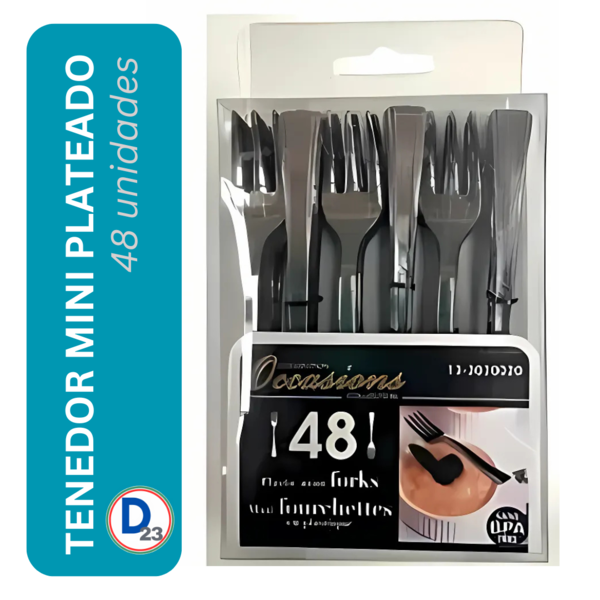 TENEDOR MINI PLATEADO 48 UNID (50662)