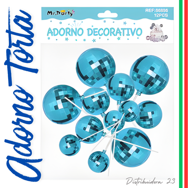 ADORNO ESFERAS DISCO 12 PCS CELESTE C/ALAMBRE (56896)