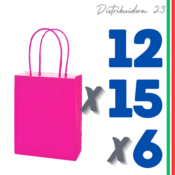 BOLSA PAPEL FUCSIA 12x15x6 CM PACK 12 UNIDADES (89168)