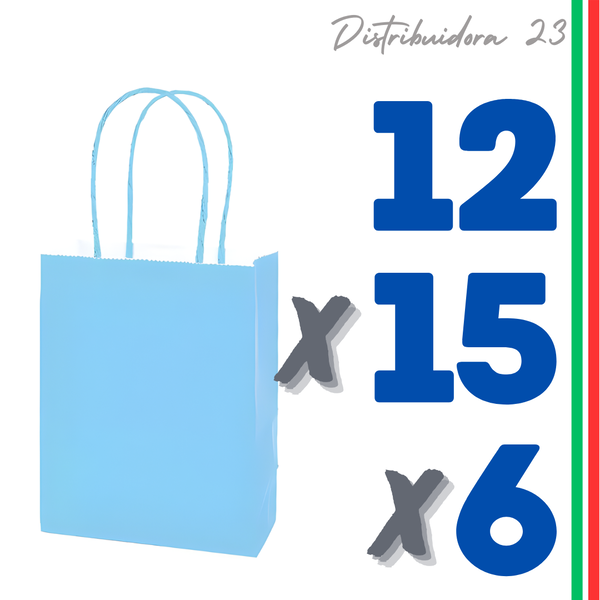 BOLSA PAPEL CELESTE 12x15x6 CM PACK 12 UNIDADES (89175)