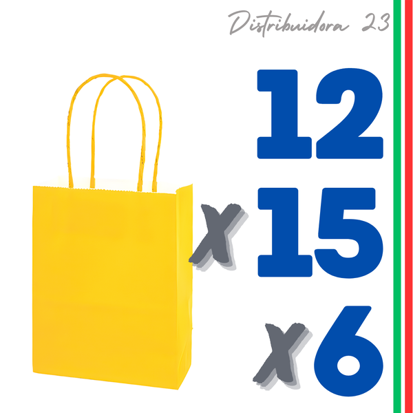 BOLSA PAPEL AMARILLO 12x15x6 CM PACK 12 UNIDADES (89176)
