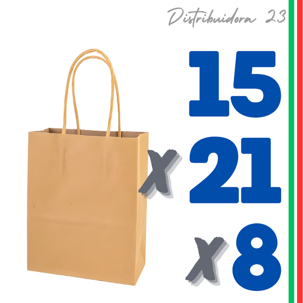 BOLSA PAPEL KRAFT 15x21x8 CM PACK 12 UNIDADES (89180)