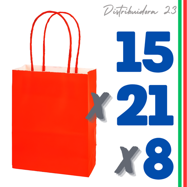 BOLSA PAPEL ROJA 15x21x8 CM PACK 12 UNIDADES (89184)