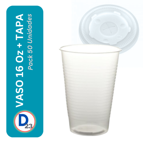 *VASO ECONÓMICO 16 OZ PACK 50 UNIDADES CON TAPA