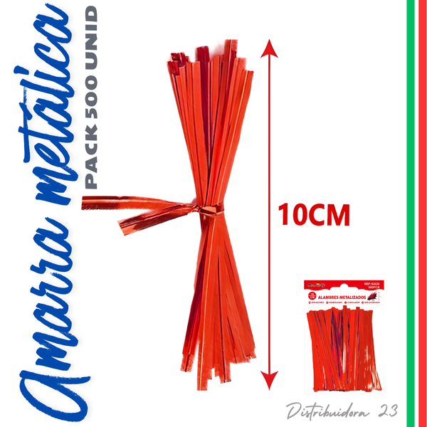 AMARRA PARA BOLSA 10 CM 500 UNID ROJO (52026)