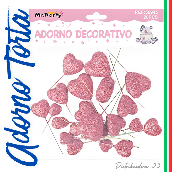 ADORNO TORTA CORAZONES ROSADOS BRILLOS 20 PCS (56945)